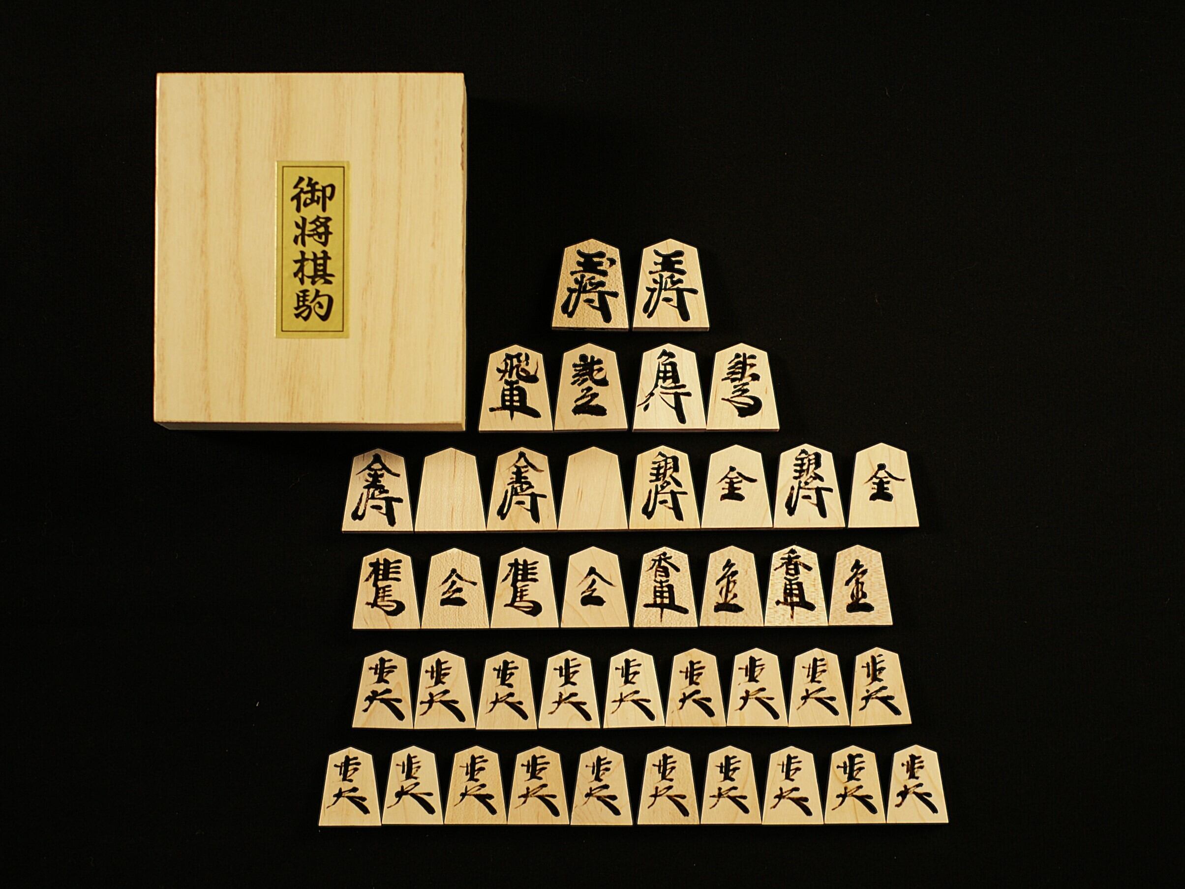 彫の工程がないため、彫駒などに較べ安価で手に入りやすく日常的な練習や対局用として使いやすい実用的な駒です。