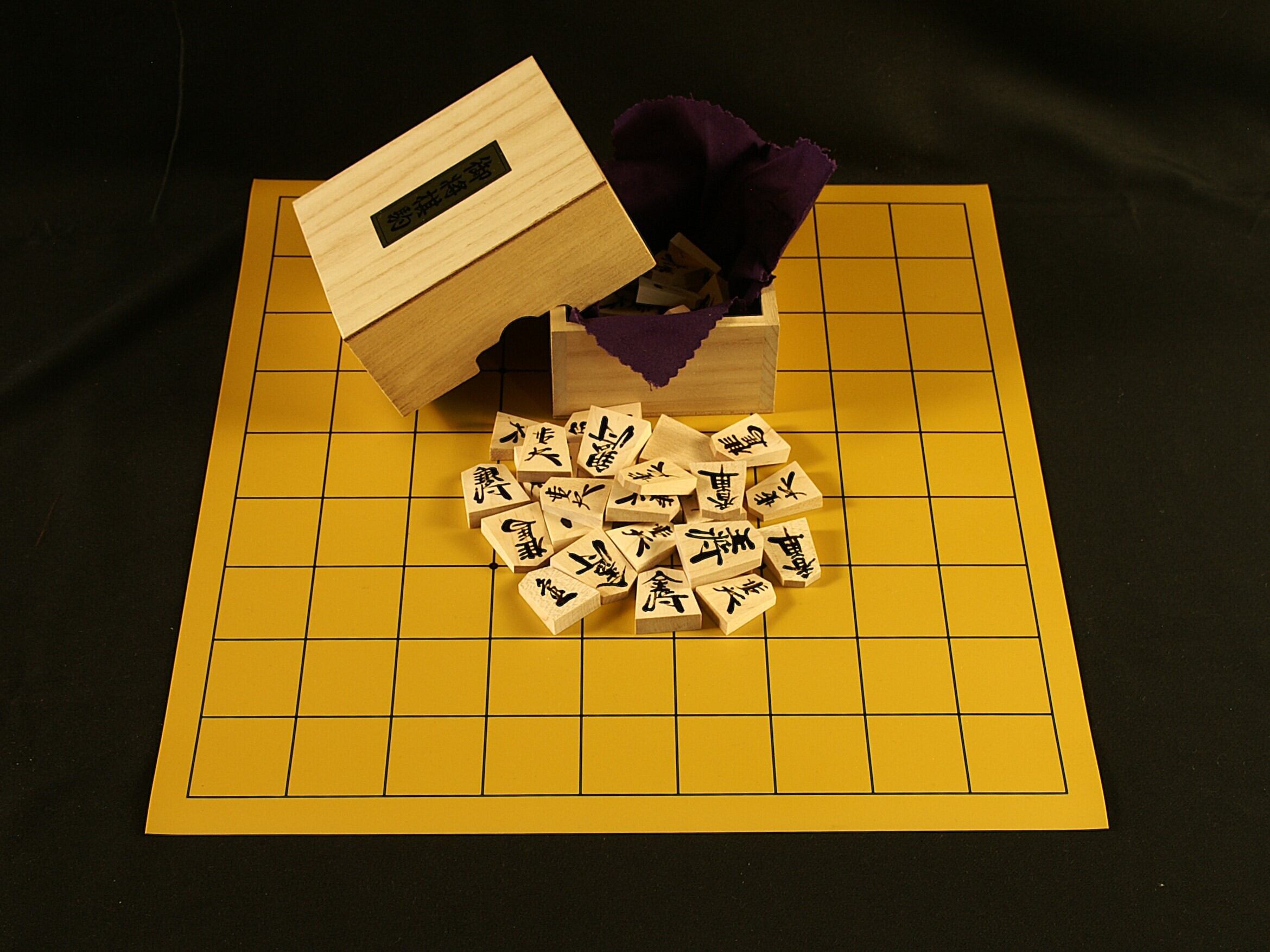 楓材に漆の手書きの将棋駒(SK-16)と扱いやすいゴムの将棋盤(SB-14)をセットしました。